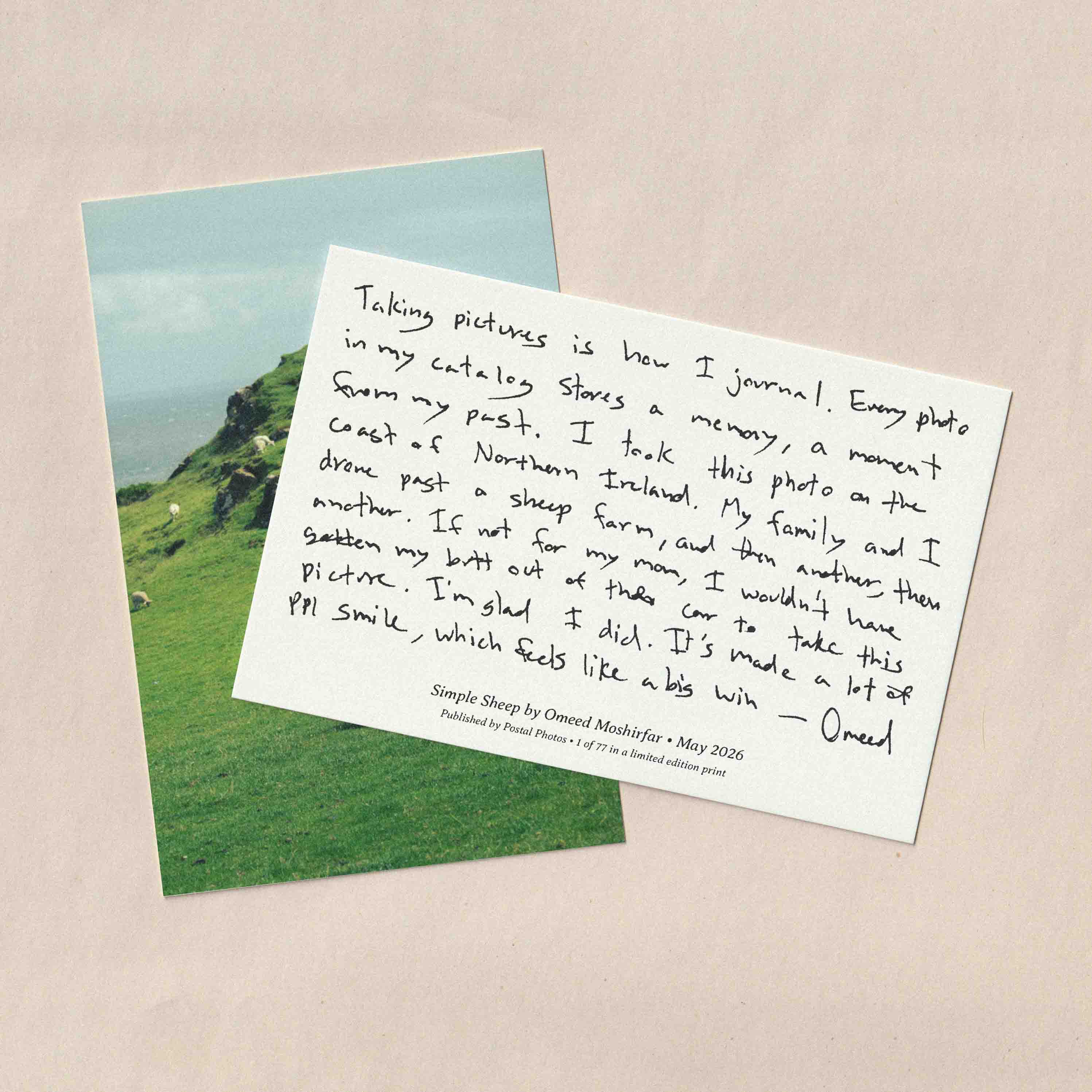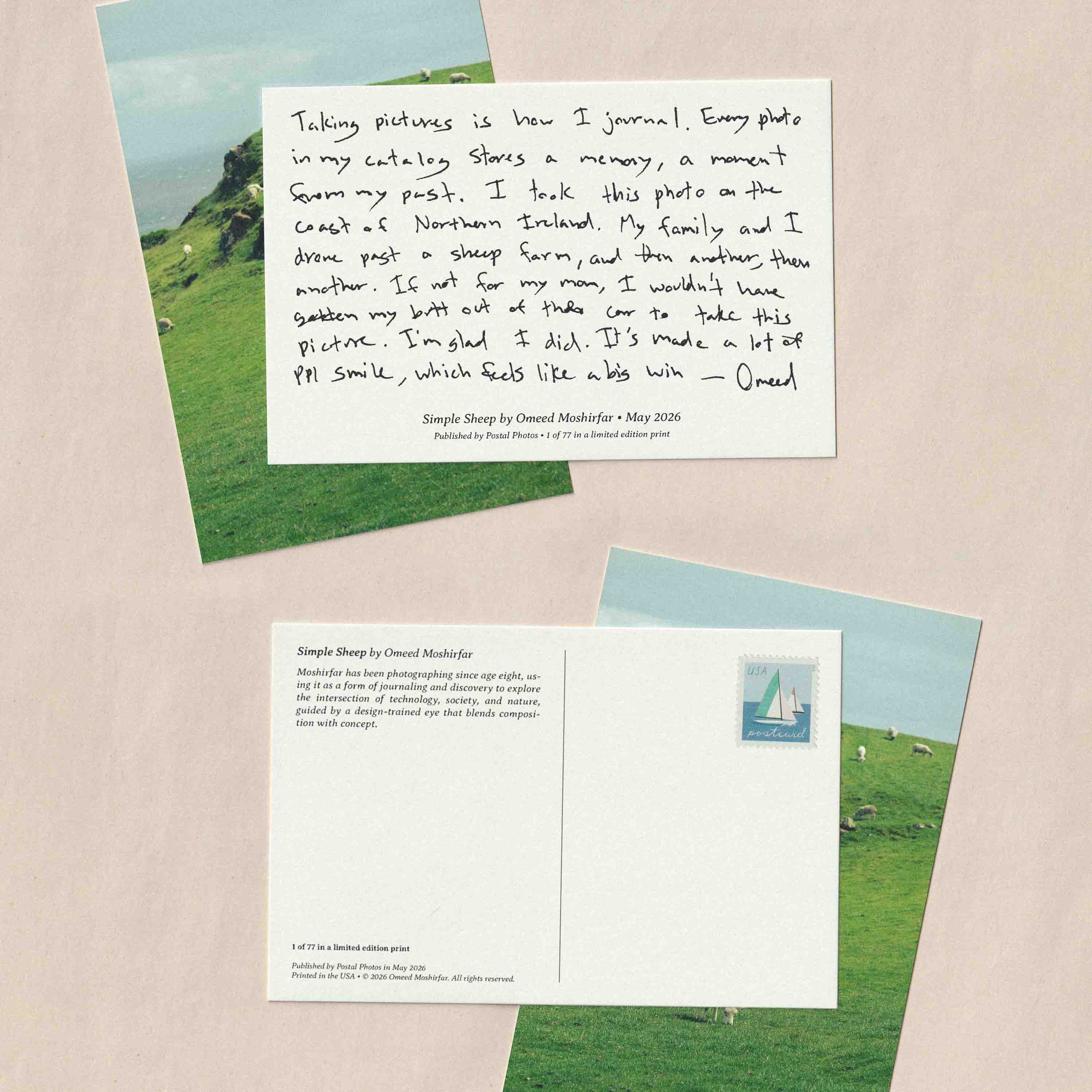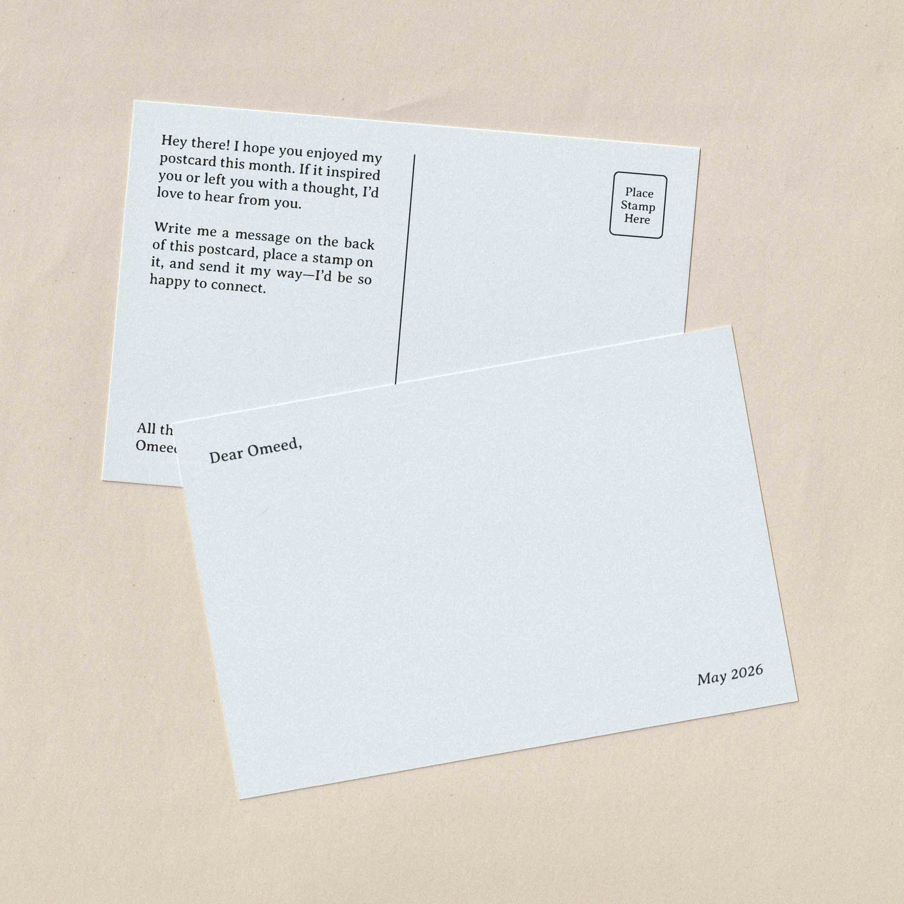 Each month, Postal Photos collaborates with an emerging photographer to present one of their images as a limited-edition postcard, thoughtfully printed and delivered to your mailbox. Each mailing is carefully packaged by hand and shipped in a protective envelope to ensure it arrives in pristine condition. Alongside the print, a return postcard is included, inviting you to respond and establish a direct, tangible connection with the artist.