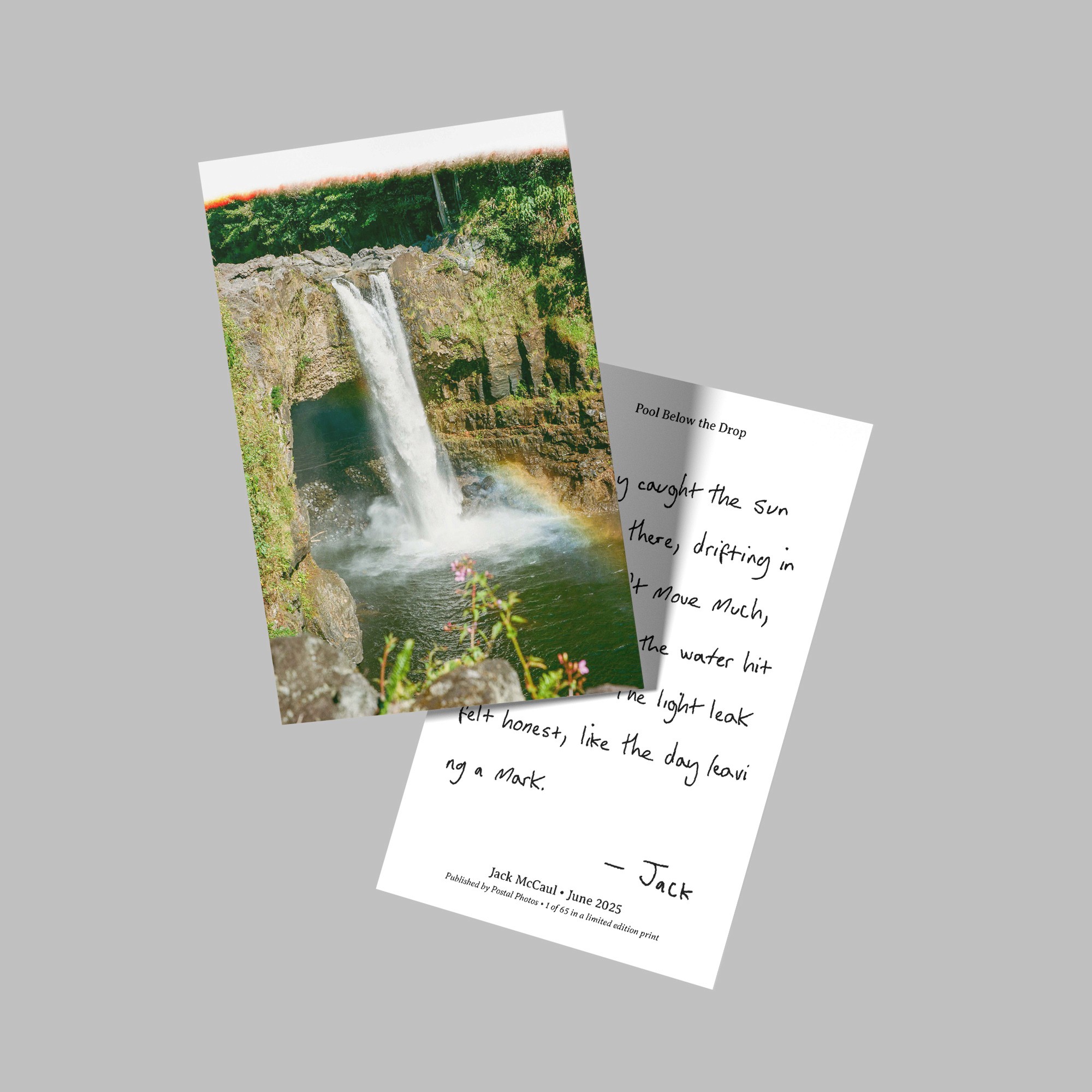 Jack is a film photographer based in Hilo, Hawaiʻi. Working exclusively with 35mm and medium-format film, his images draw inspiration from the quiet attentiveness of poet Mary Oliver. His work moves between portraits, landscapes, and surf photography. When he’s not shooting, Jack is usually in the water, listening to music, or spending time with good friends.