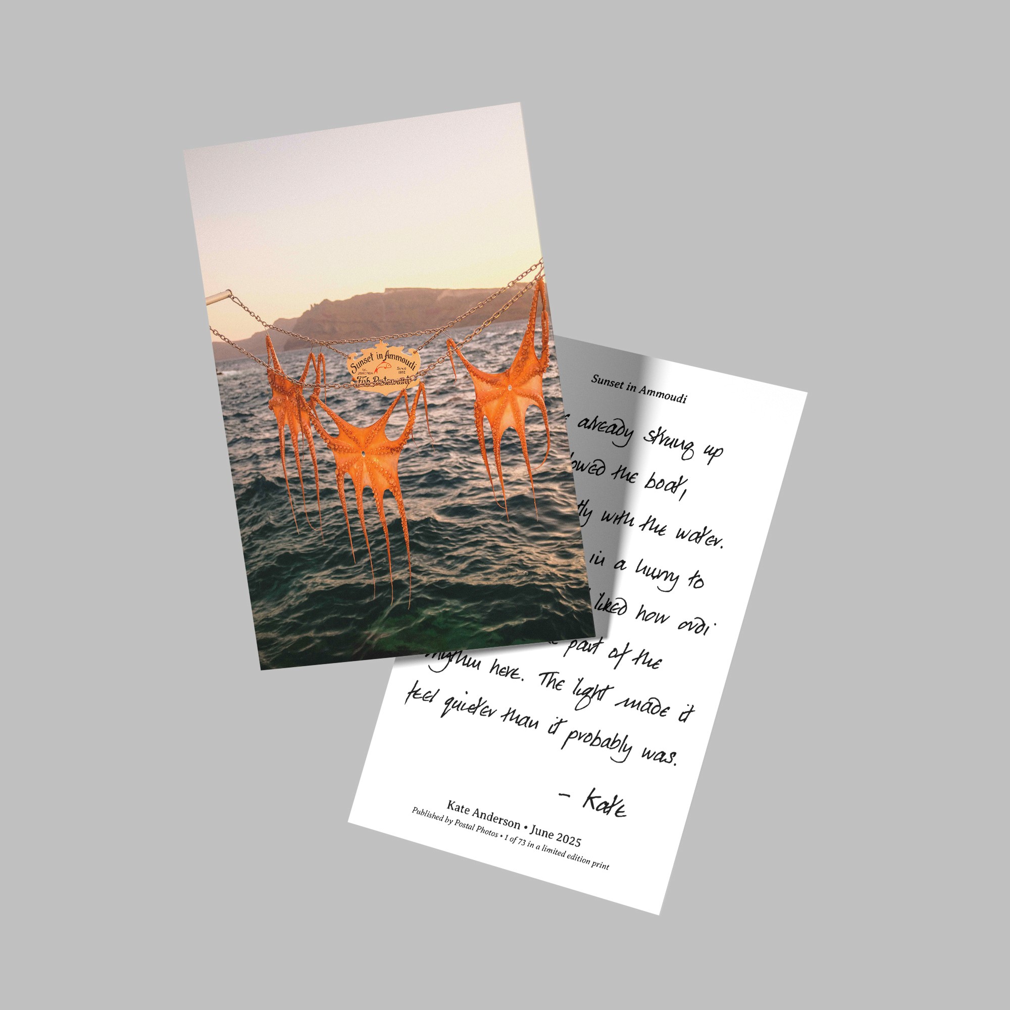 Each month, Kate will curate and mail one of her favorite photographs to you on a premium quality, limited edition postcard. In addition to being packaged by hand, each postcard will be shipped in an envelope to ensure safe delivery to your mailbox.