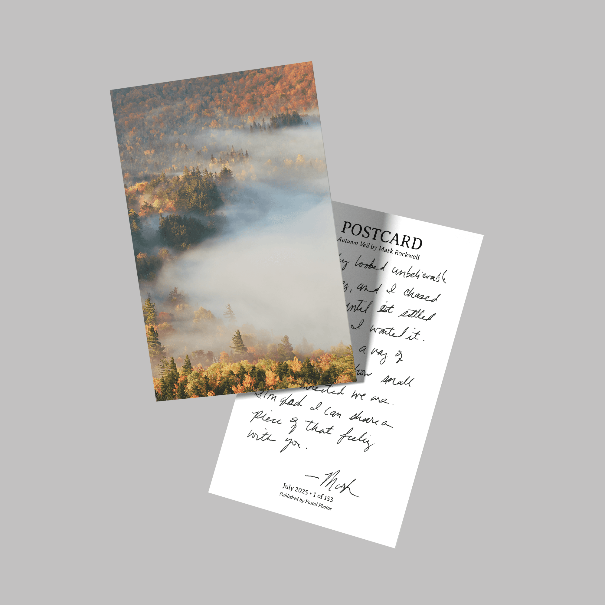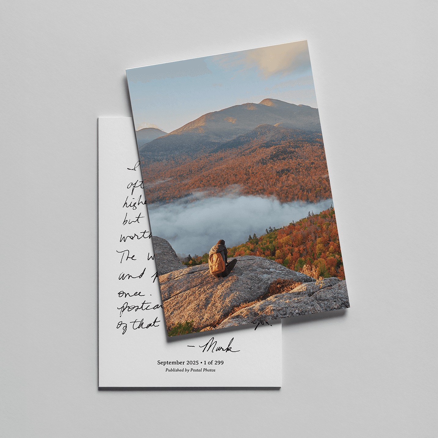 Each month, Mark will curate and mail one of his favorite photographs to you on a premium quality, limited edition postcard. In addition to being packaged by hand, each postcard will be shipped in an envelope to ensure safe delivery to your mailbox.